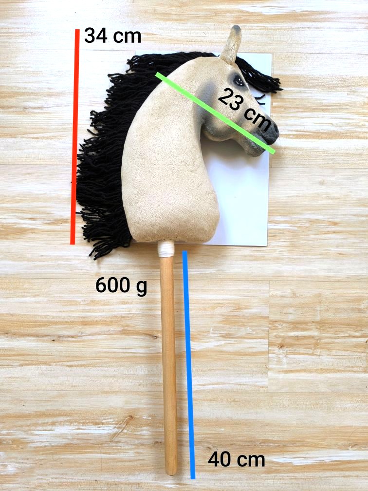 -Rozmiar A4 (szerokość głowy ok. 23 cm, wysokość głowy z uszami ok. 34 cm, kij ok. 40 cm),