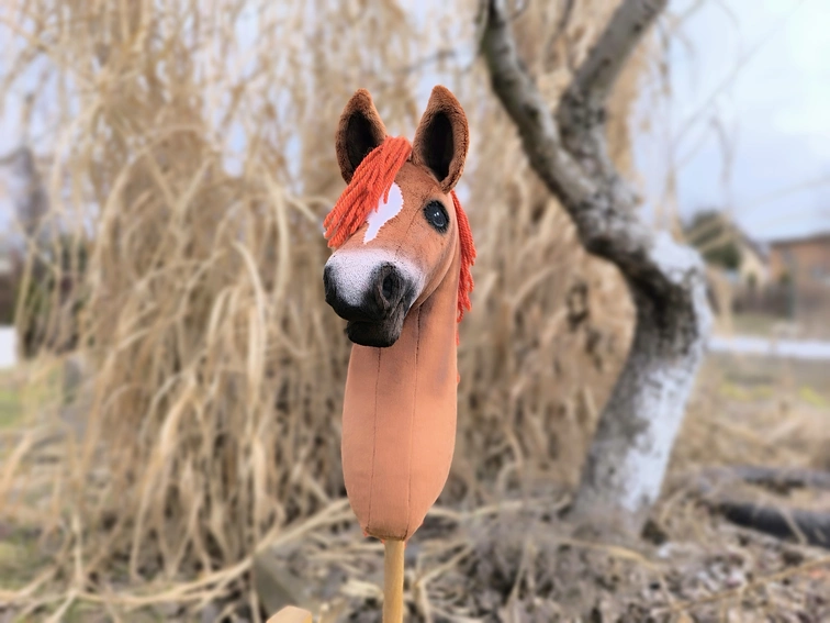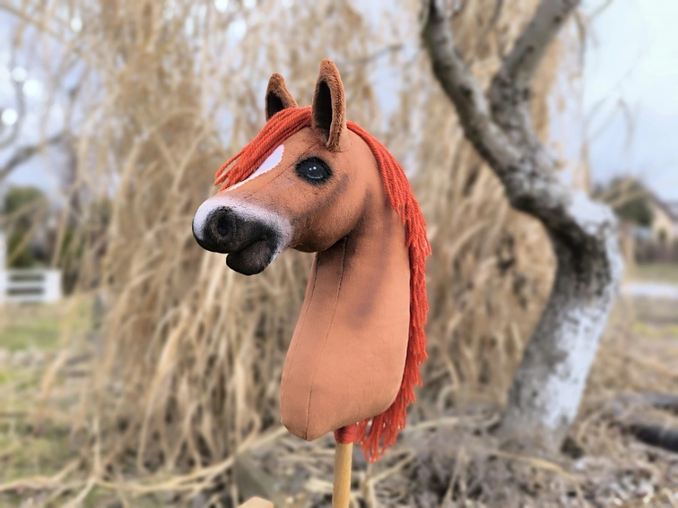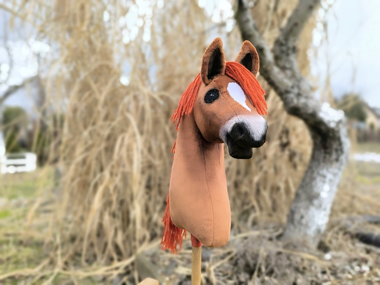 Poznaj hobby horse kasztanek, realistyczny, ręcznie wykonany konik na kiju. Wzorowany jest na irlandzkim koniu sportowym, który słynie z dobrej mechaniki ruchu w kłusie i galopie przydatnej w skokach.