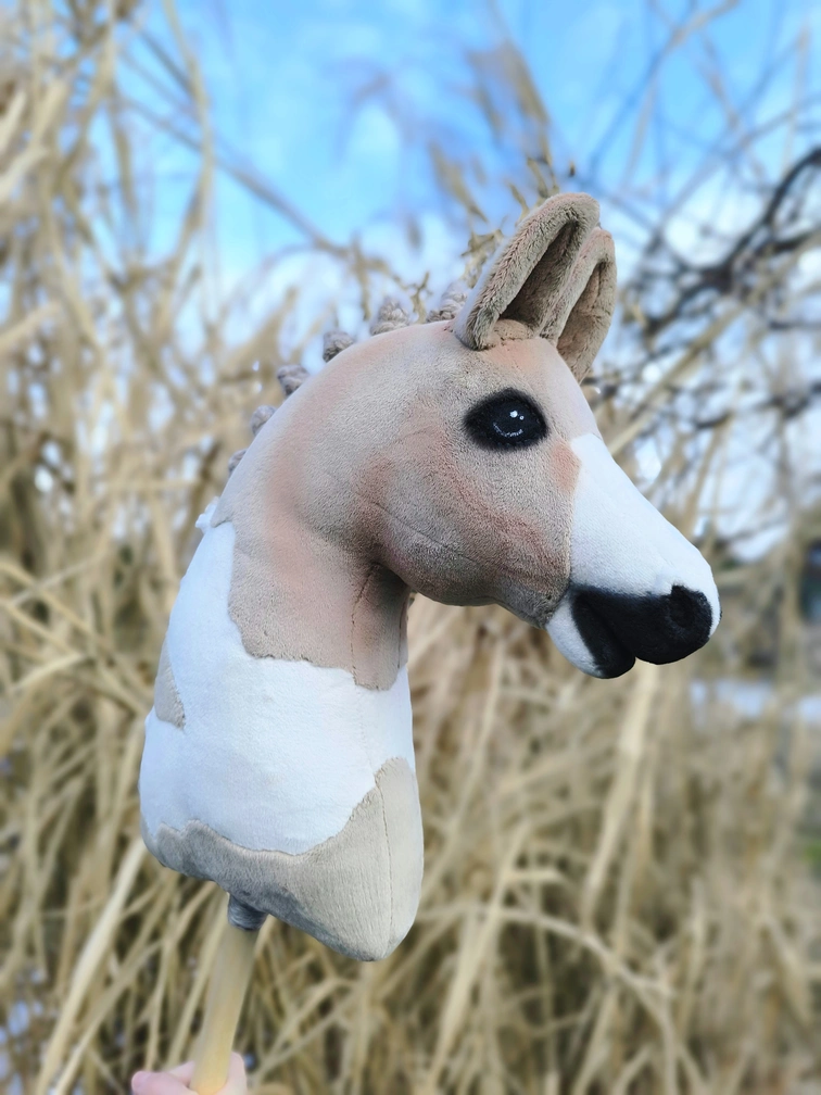 Poznaj hobby horse – Tobiano, srokaty, realistyczny – jest to rasa sportowa, nadająca się zarówno do ujeżdżenia jak i skoków przez przeszkody. HLE Pepper hor pięknie się prezentuje, dzięki odmianom na głowie i szyi, a także dwukolorowej grzywie zaplecionej w korkociągi (można je rozplatać).